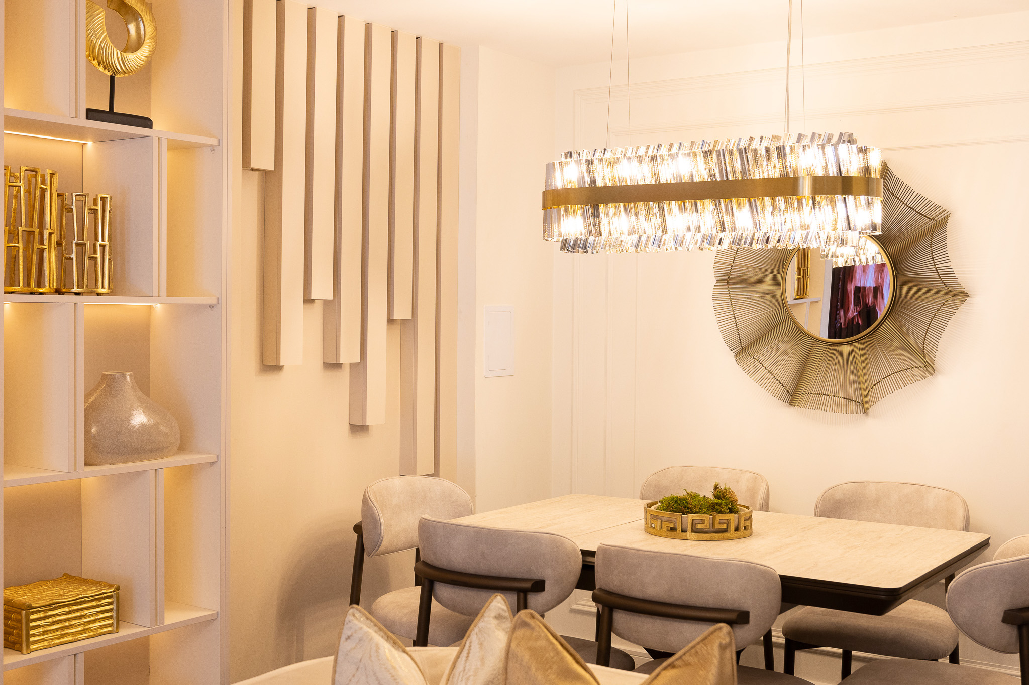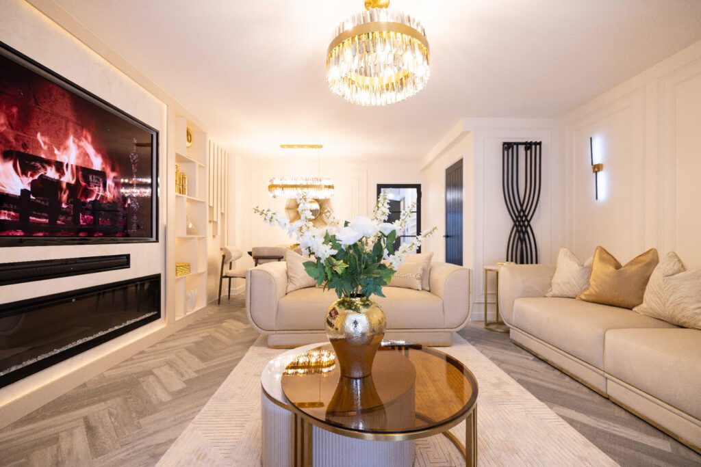 From the very first concept to the final accessory, we approached every detail with intention. Furniture, finishes, and fabrics were chosen not only for their beauty but also for their practicality, ensuring the home remained as functional as it is luxurious. Bespoke lighting, refined textures, and carefully coordinated accessories brought the design together, creating a space that feels both elevated and inviting.